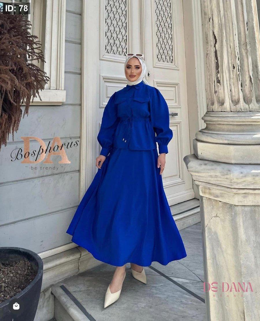 طقم تنورة وقميص لون نيلي مميز